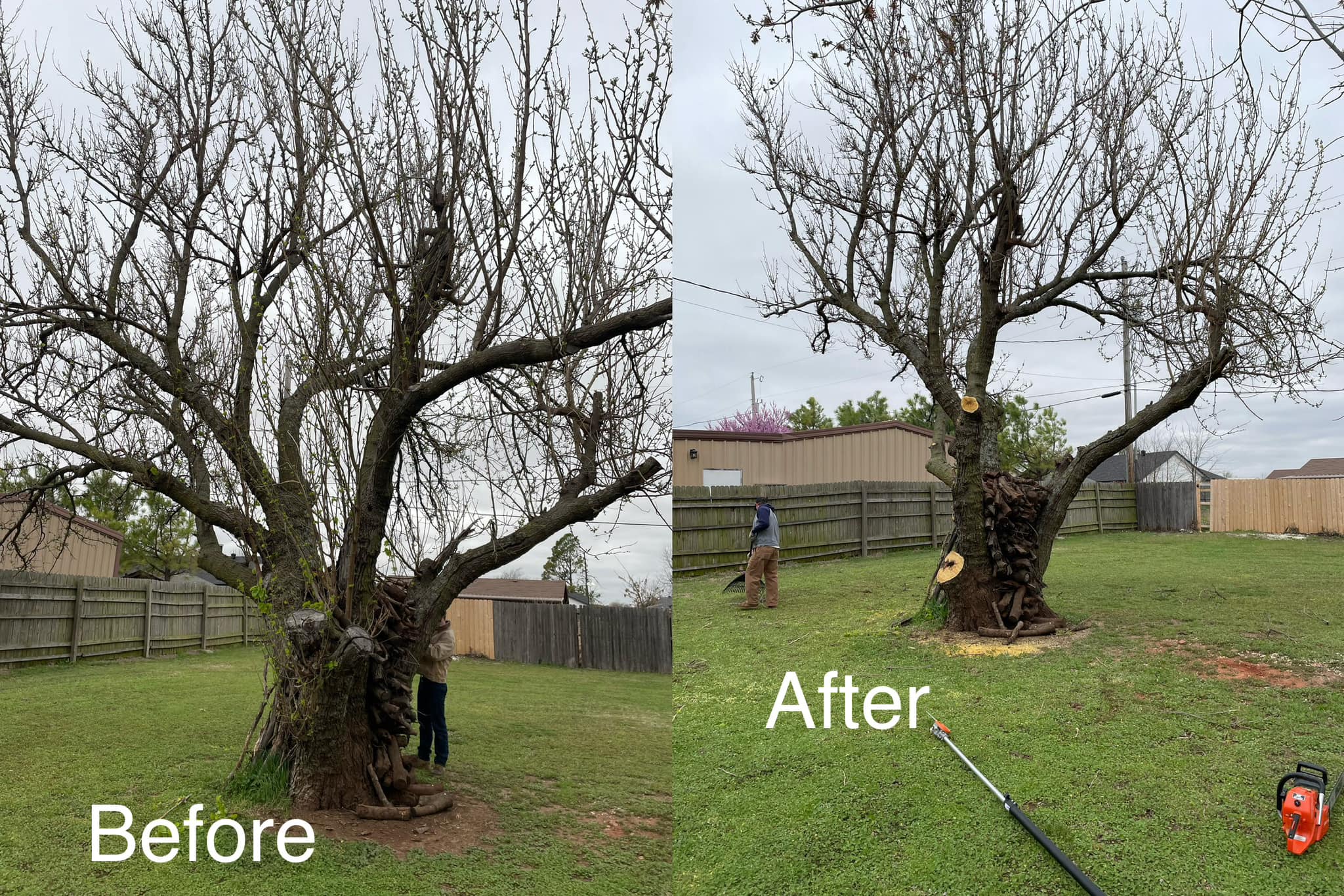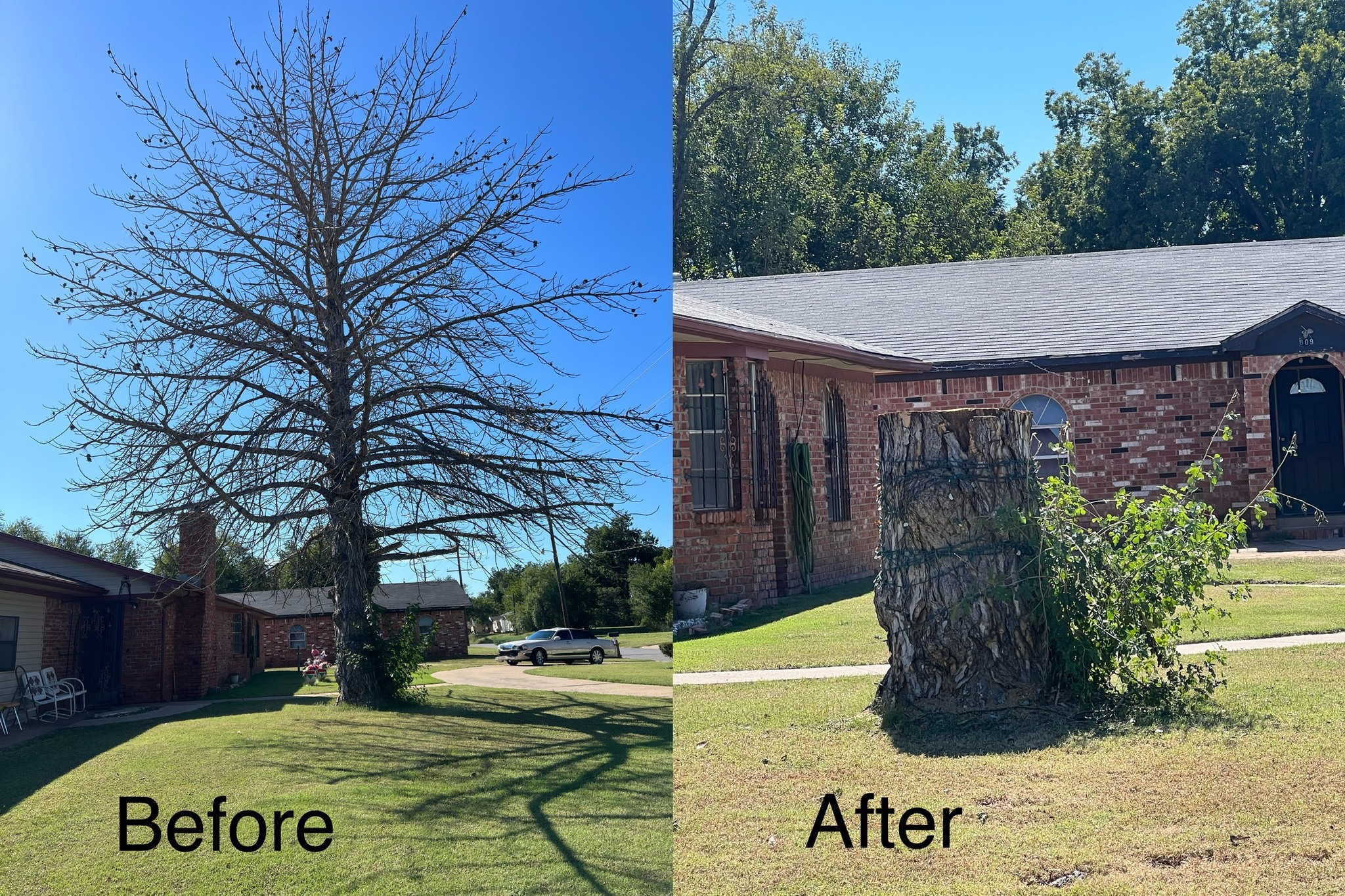 Most residential properties in Oklahoma don't require permits for tree removal, but some cities have rules about protected species or trees near property lines. We can tell you what applies to your situation based on where you live. If a permit is needed, we walk you through the process.